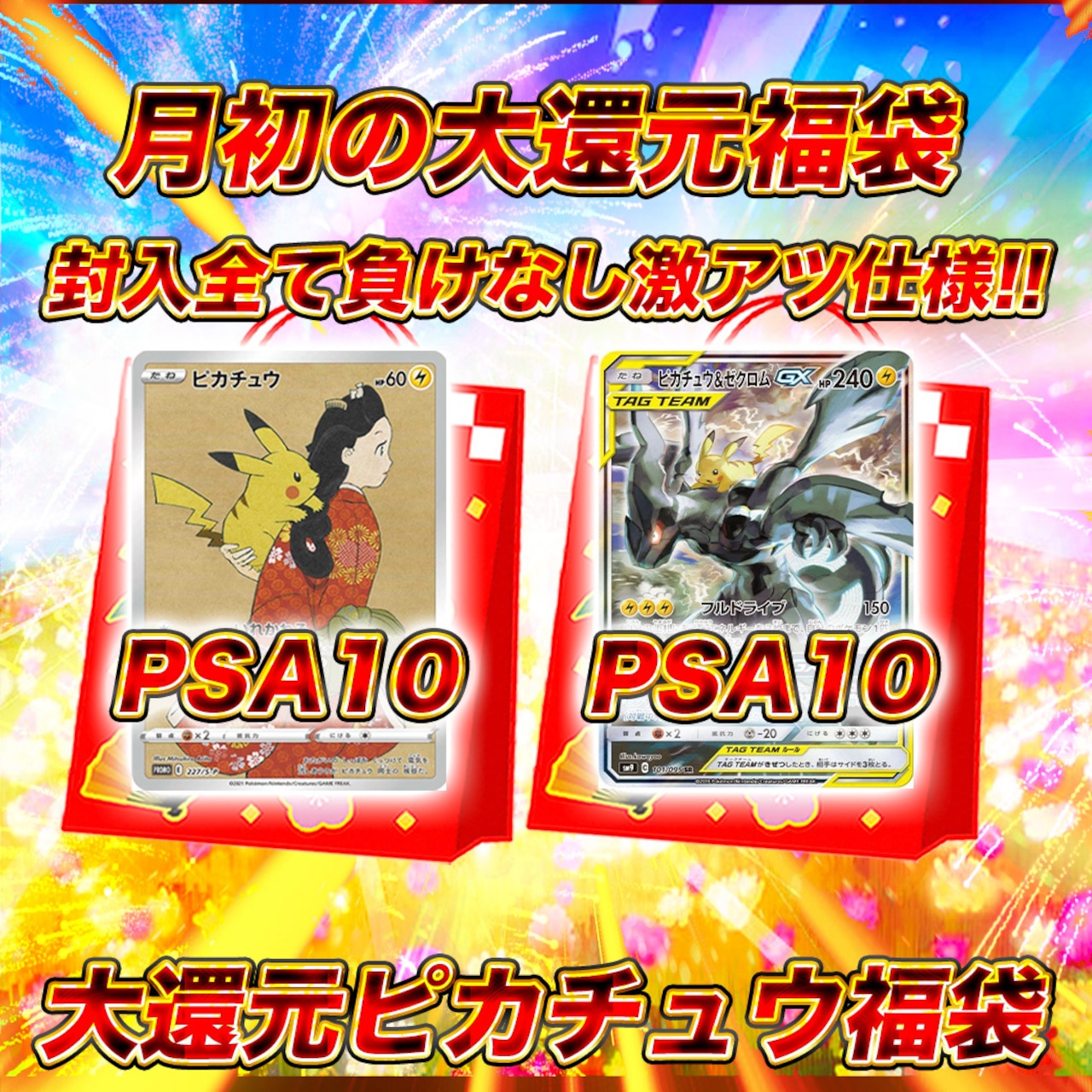 ピカチュウ&ゼクロムGX(SA) 101/095, PSA10×1枠 を含む 販売金額100,000円〜35万円の福袋