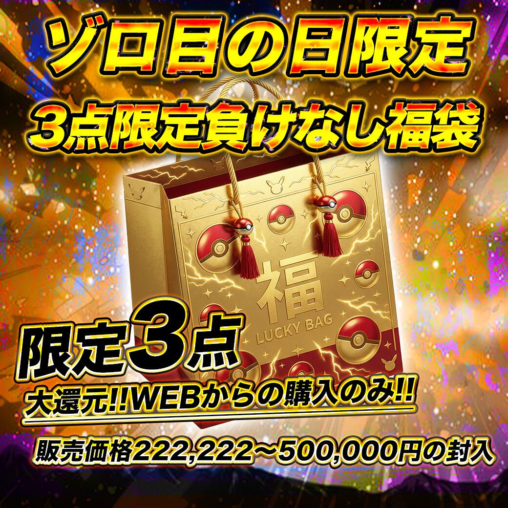 ポケモン 限定3点ゾロ目の日負けなし福袋 ポケカポケモンカードオリパ くじ,